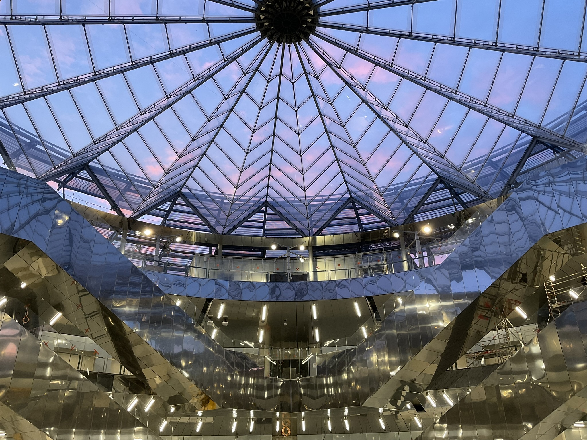 Gaëlle Lauriot‑Prévost, asociată în biroul Dominique Perrault Architecture, a proiectat amenajările interioare, iluminatul și acustica. Materialitatea proiectului folosește o gamă de texturi ale oțelului inoxidabil: neted, plasă, perforat, lustruit ca oglinda și satinat. Aceste finisaje creează ambianțe diferite, favorizând totodată propagarea luminii prin jocul de reflexii, străluciri și filtre.