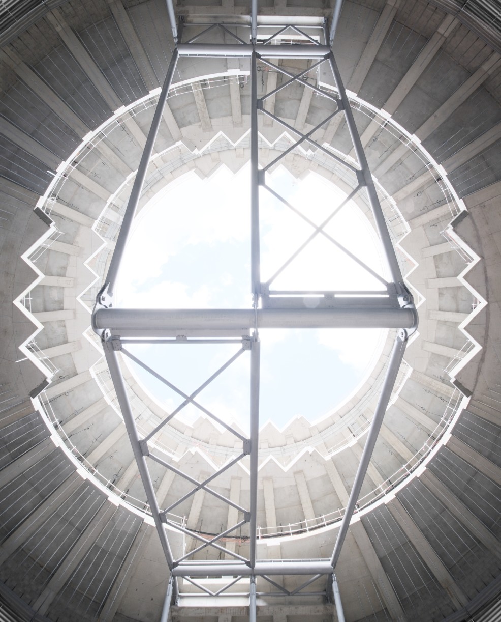 Stația Villejuif–Gustave Roussy urmărește să șteargă pragul dintre spațiul public deschis și spațiul închis al stației, estompând limitele orașului. Arhitectura sa helicoidală la suprafață exercită o forță centripetă asupra țesutului urban, atrăgându‑l către spațiul creat în subteran. Marele cilindru de beton cu peretele său turnat, inundat de lumină, este străbătut și animat de pasarele și scări rulante. Aici, cerul acestui zgârie‑nori inversat este pur și simplu nivelul solului în oraș. Lumina naturală se revarsă până la peroanele situate la aproximativ cincizeci de metri subteran. Cerul este deasupra liniilor ferate.